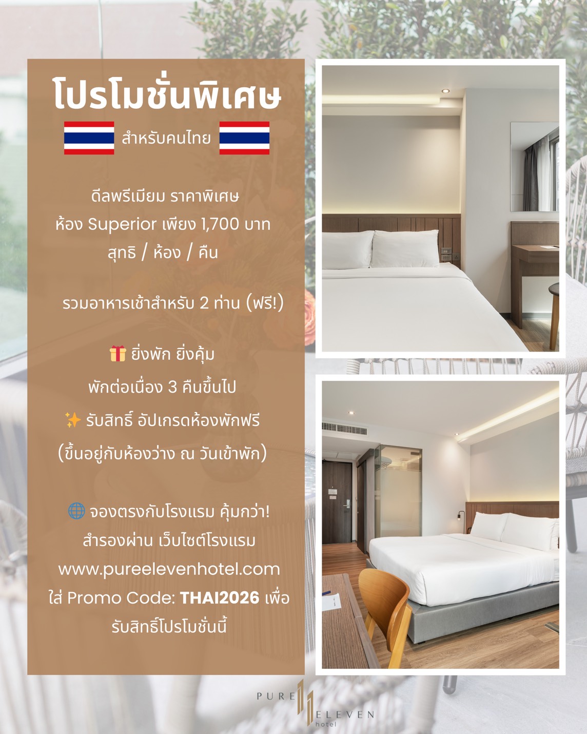 Experience pure comfort in the heart of Bangkok at Pure Eleven Hotel Bangkok. Our stylish accommodations and prime location make us the perfect choice for business and leisure travelers alike